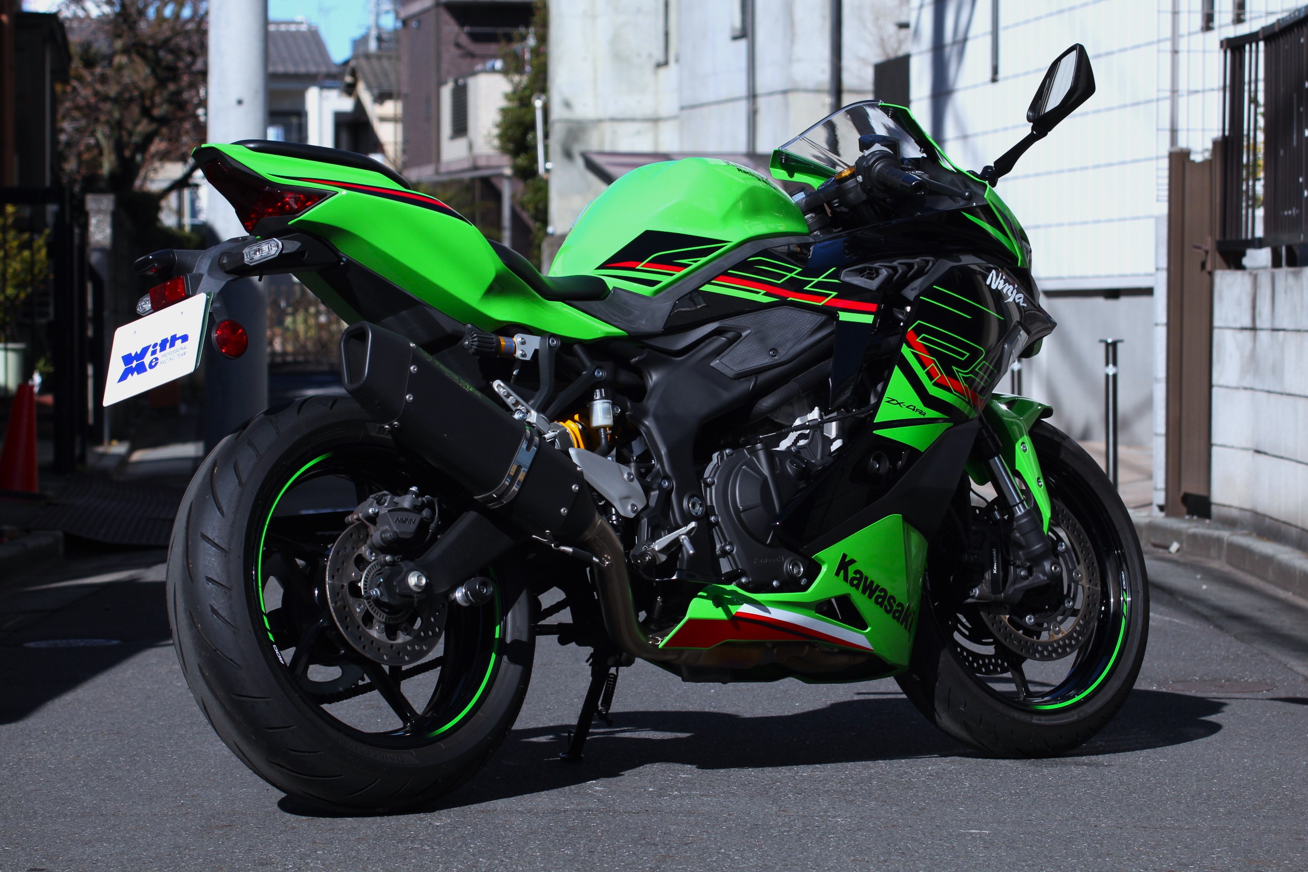 この車両は、WITH ME 現役レーサー丸山 浩がオーリンズサスペンション他、ZX-4RR用商品開発のために