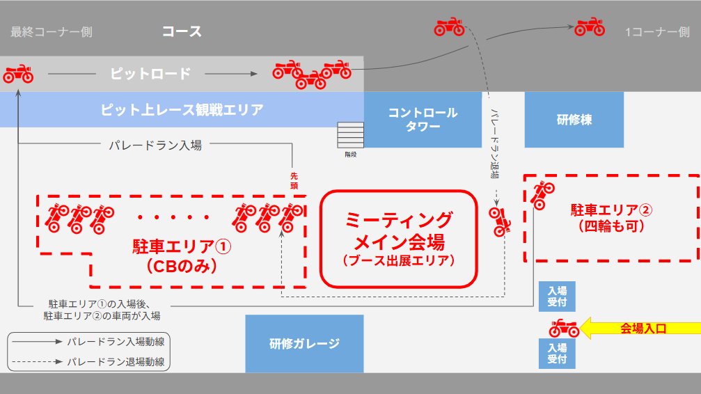 | 開催場所 | :袖ヶ浦フォレストレースウェイ(千葉県袖ケ浦市) ※マル耐2輪会場内パドック |